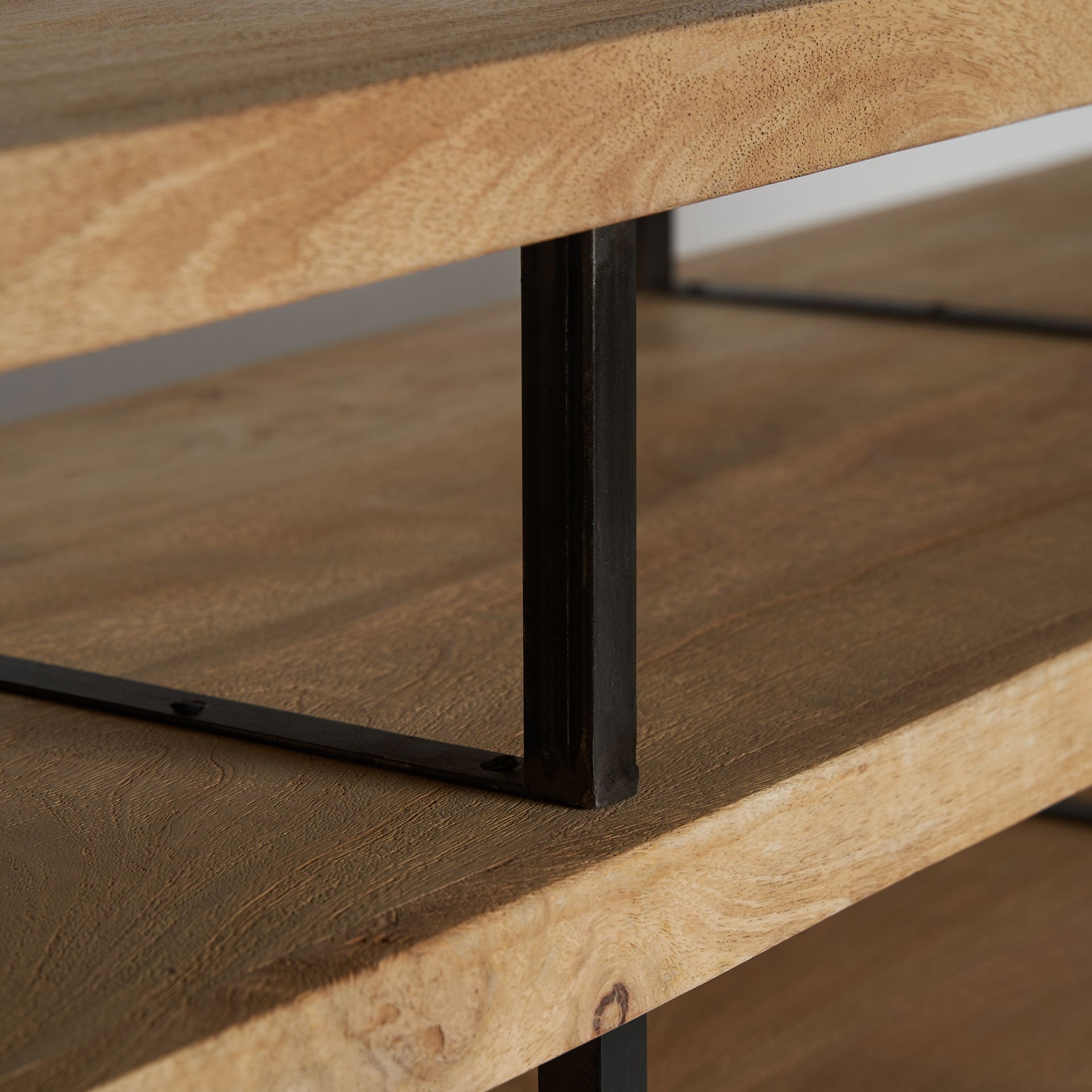 Material, culoare și finisaje: LEMN DE MANGO în culoarea MARO DESCHIS, FIER
