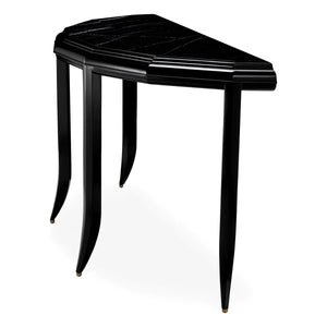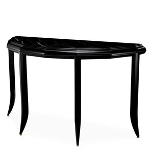 Descoperiți consola Javier de la Eichholtz, o combinație armonioasă de măiestrie artizanală și design sofisticat. Finisajul său negru cerat și blatul din marmură neagră emană o eleganță atemporală, prezentând variații unice de culoare și texturi.