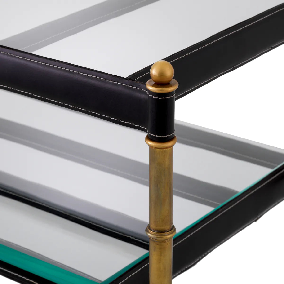 Finisaj vintage din alamă | piele neagră | sticlă transparentă teșită