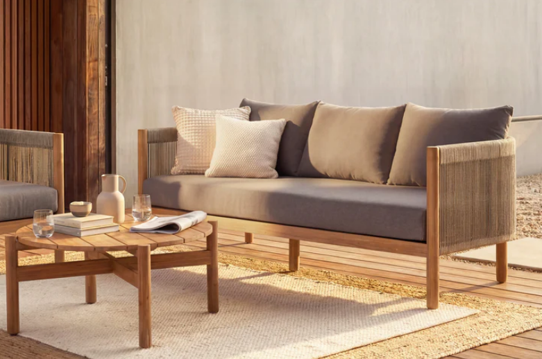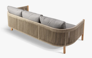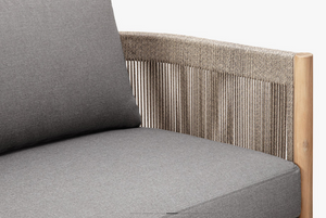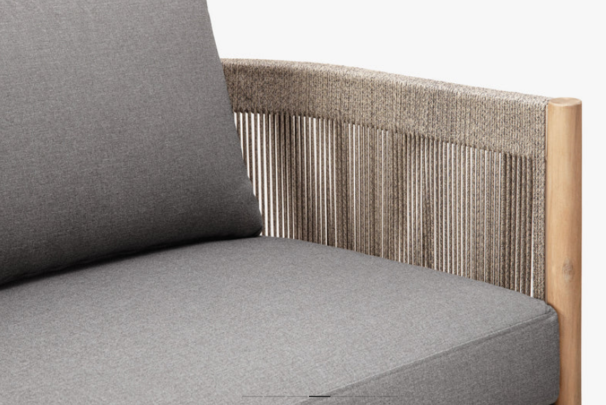 Banca de grădină Majorelle cu 3 locuri a fost proiectată cu gândul la relaxarea în aer liber. Cadrul din lemn, decorat cu detalii din frânghie împletită, are un aspect ușor și confortabil, în timp ce pernele moi oferă confort maxim.