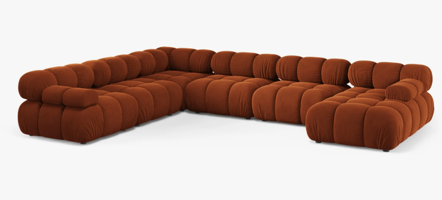 Canapea modulară panoramica Bellis destinata unui living spatios, combina forma iconica cu confortul scaunului.