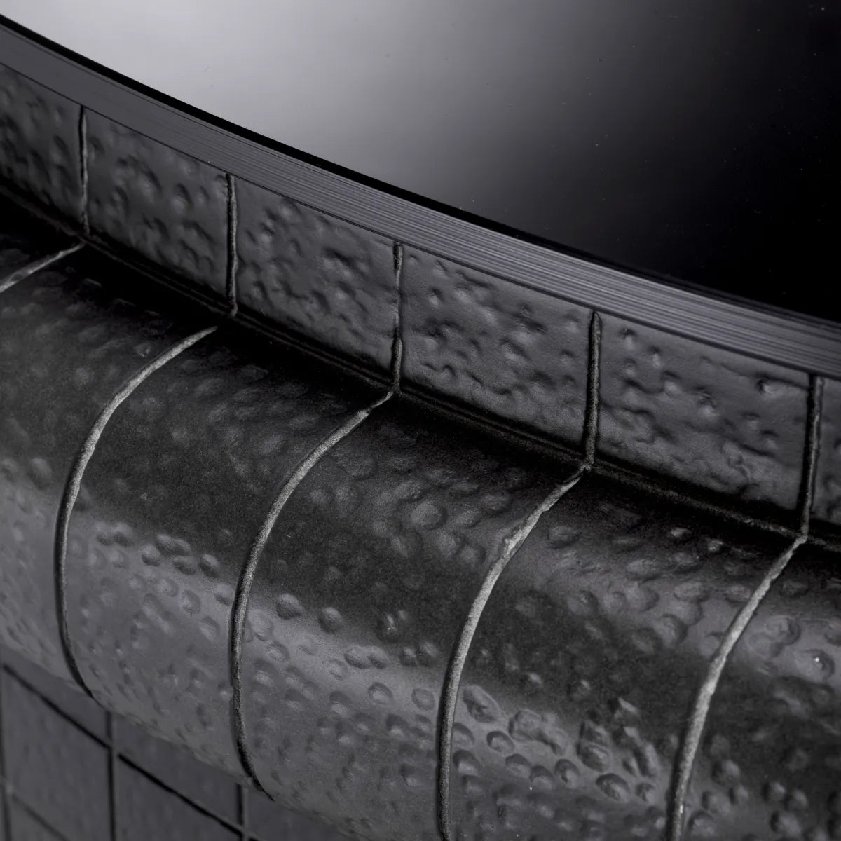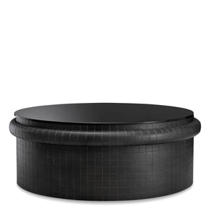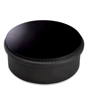 Înnobilează-ți spațiul cu măsuța de cafea Tortugo. Baza prezintă un model rafinat care adaugă profunzime vizuală și fler artistic, în timp ce blatul din sticlă neagră îi amplifică farmecul modern.
