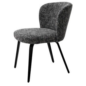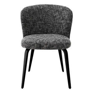 Scaunul de masă Halard aduce un plus de stil fiecărui dining, datorită influențelor sale retro rafinate. Designul este armonios echilibrat prin picioarele negre, elegante și conice, spătarul arcuit ce asigură confort și tapițeria sofisticată Cambon Black, ușor de integrat în orice decor.