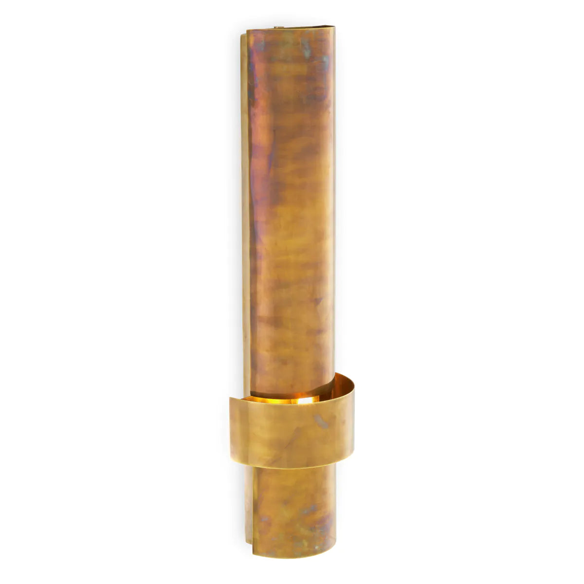 Descoperiți farmecul cald al lămpii de perete Foxwood, cu un finisaj vintage din alamă care radiază o opulență subtilă.