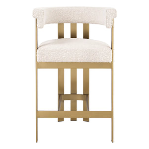 Pășește în lux cu scaunul de bar Clubhouse, o versiune rafinată a scaunului nostru de sufragerie cel mai bine vândut. Tapițat cu o țesătură Bouclé Cream, confortabilă și elegantă, acest scaun de bar oferă confort și stil excepționale. Finisajul din alamă periată îi accentuează stilul.