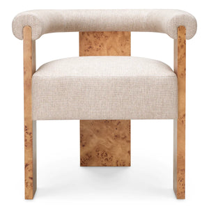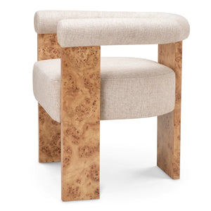 Descoperiți scaunul de dining Percy, unde furnirul de nuanță de mappa maro deschis întâlnește căldura naturală a țesăturii Loki. Cunoscut pentru modelele sale complexe, în vârtej, și profunzimea vizuală bogată, nuanța de mappa adaugă un caracter distinctiv designului.