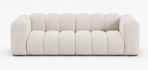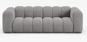 Colecția oferă mai multe opțiuni de canapele, inclusiv modele cu cotiere închise sau modele deschise, iar în loc de colțuri tradiționale, veți găsi forme grațioase, curbate.